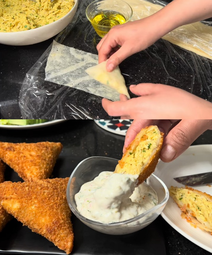 Samosas au poulet avec sauce béchamel, croustillants et délicieux 😋, avec la méthode de conservation.