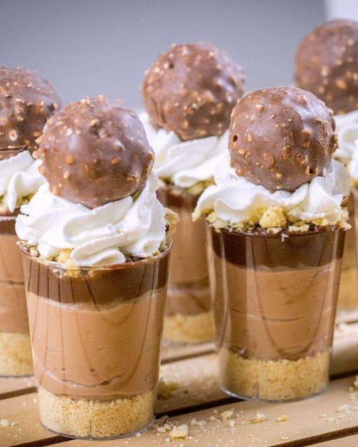 Ils sont le dessert parfait pour chaque occasion! INGRÉDIENTS Écraser les biscuits 6 cuillères à soupede Mascarpone 250gr Double crème 100 ml Crème de noisettes 2 cuillères à soupeFerrero rocher 8 haché 2 morceaux de chocolat blanc refroidi fondu Garniture de crème de noisettes fondue (refroidie), Lire la suite en page suivante