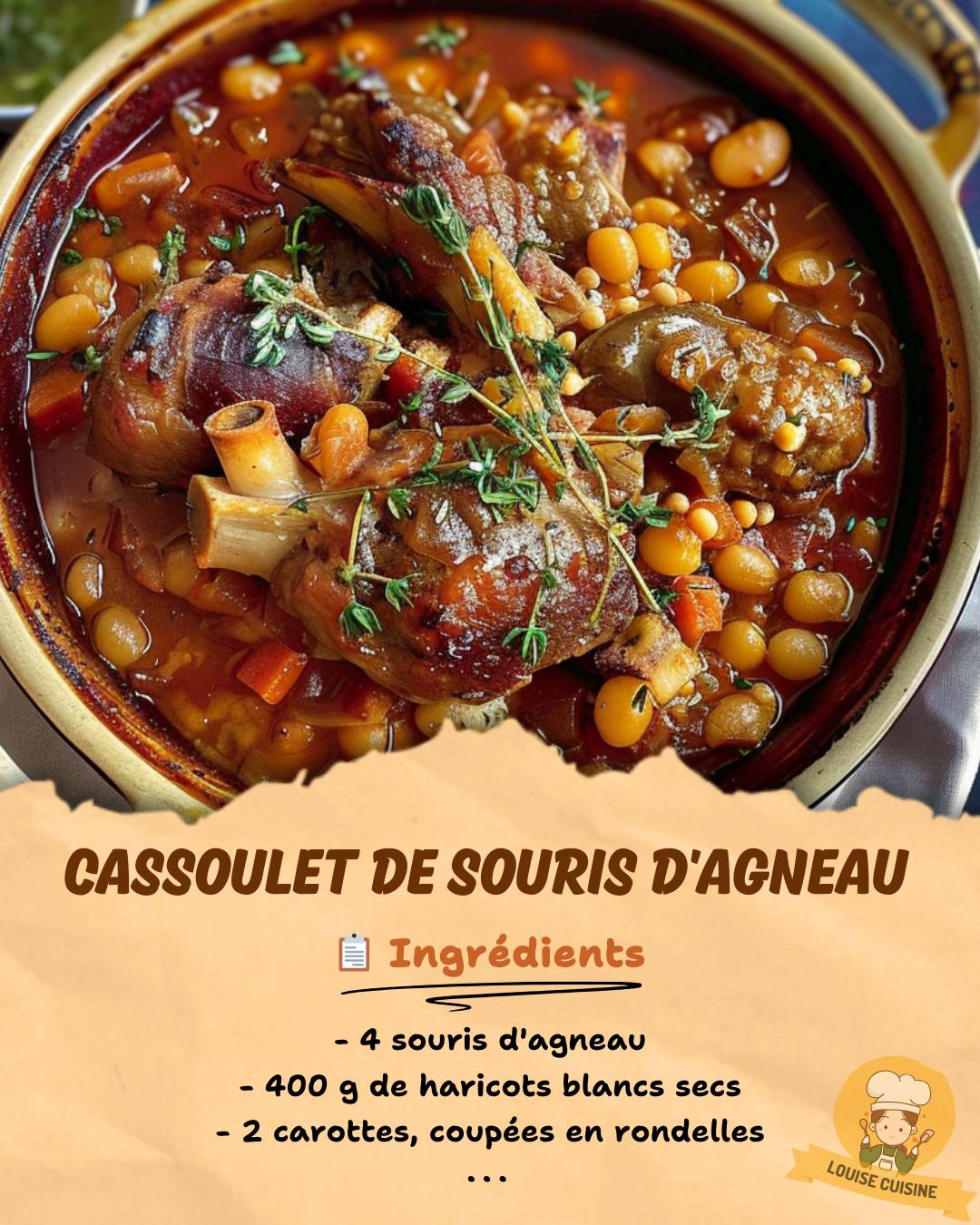 Cassoulet de Souris d’Agneau 🍲🍖 📋 Ingrédients : – 4 souris d’agneau – 400 g de haricots blancs secs – 2 carottes, coupées en rondelles – 1 oignon, émincé – 2 gousses d’ail, hachées – 2 branches de thym – 2 feuilles de laurier – 1 boîte de tomates concassées (400 g) – 1 litre de bouillon … Lire plus