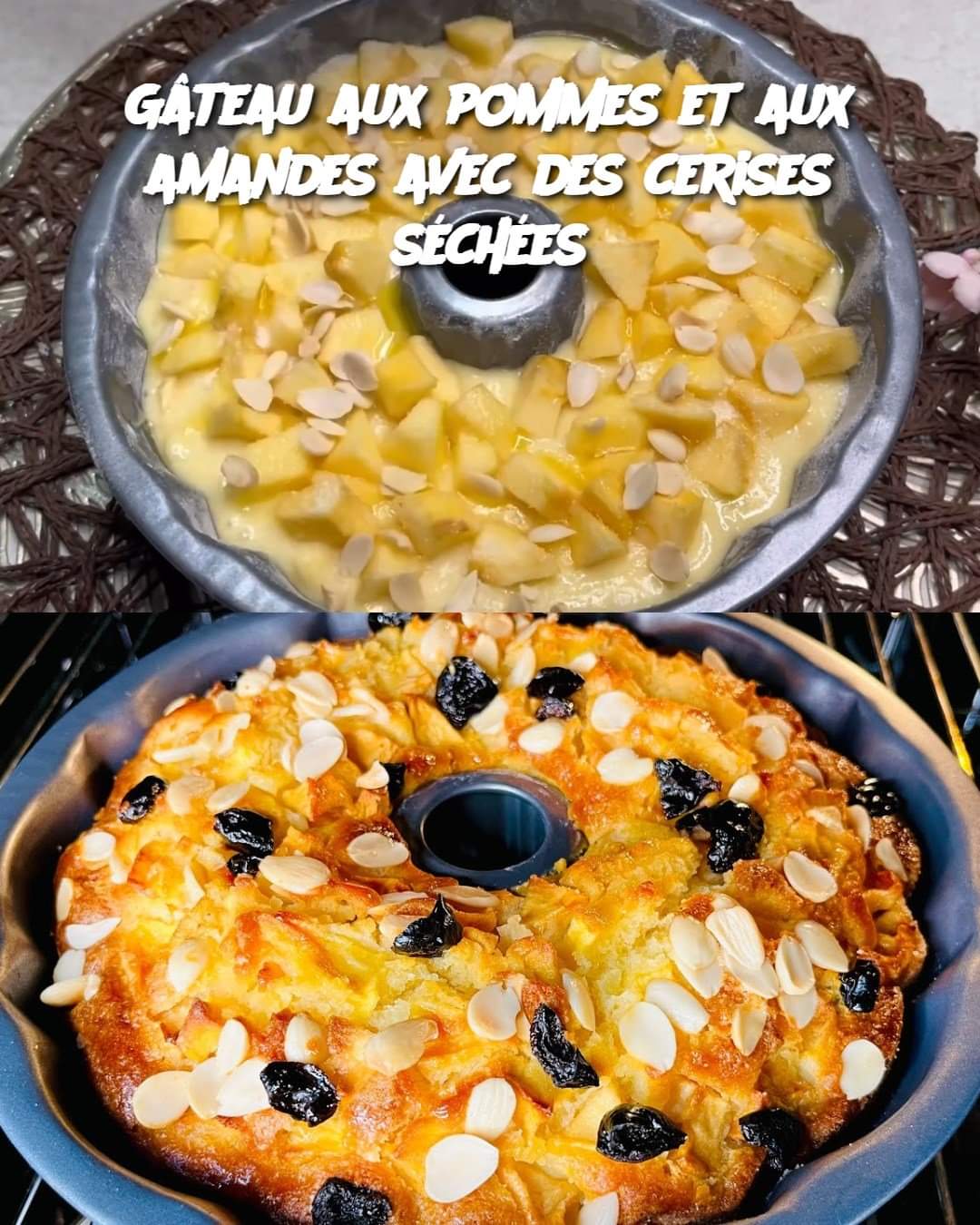 Gâteau aux pommes et aux amandes avec des cerises séchées