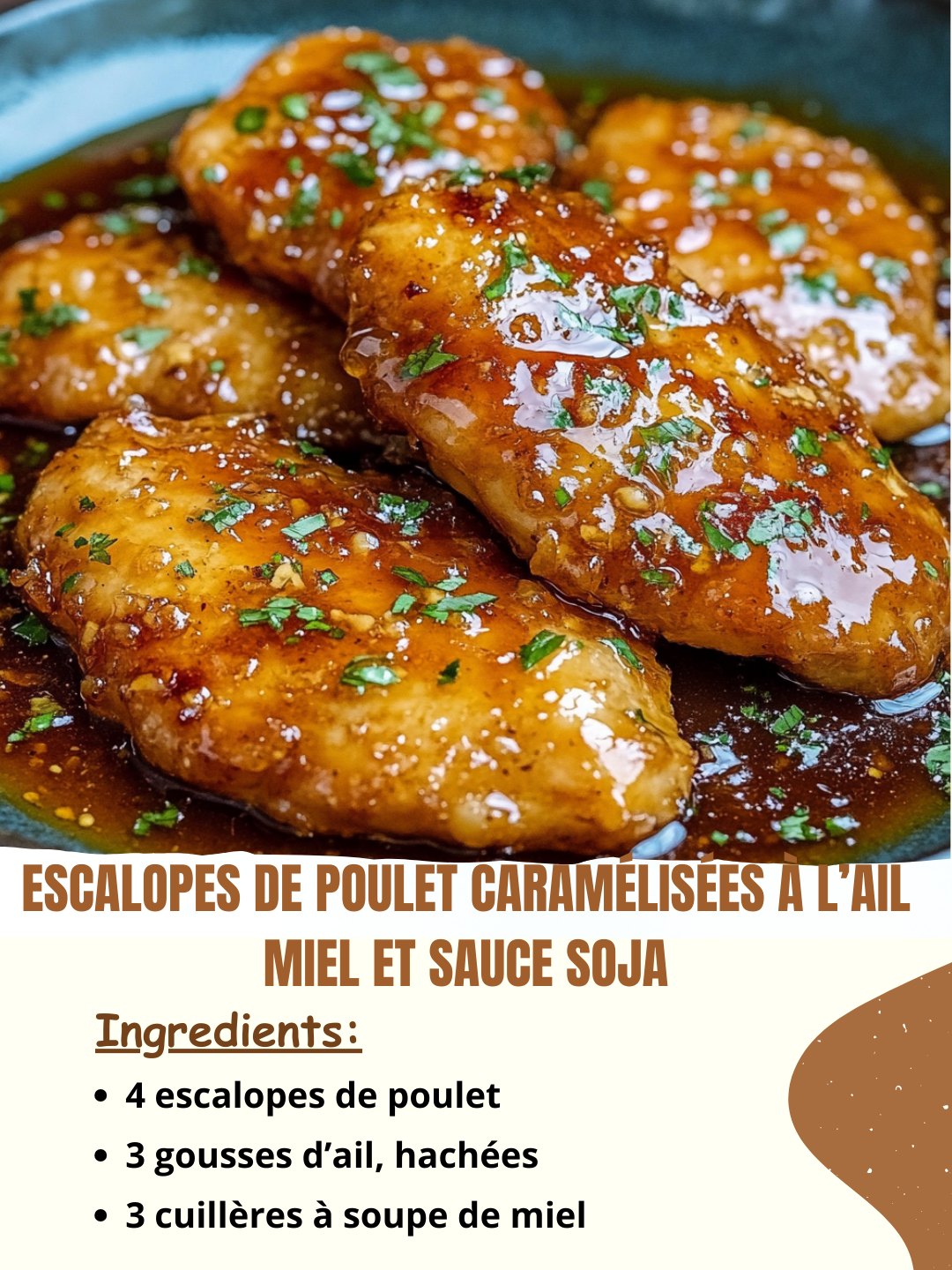 Escalopes de Poulet Caramélisées à l’Ail, Miel et Sauce Soja