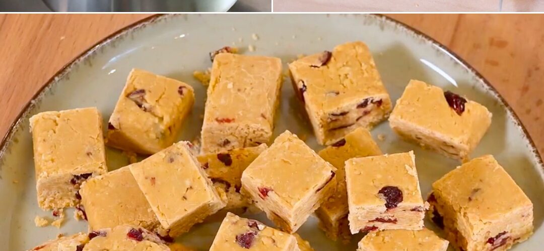 Ingrédients: 200 g d’amandes 380 g de lait concentré 80 g de chocolat blanc 60 g de canneberges séchées Directions: la suite en page suivante