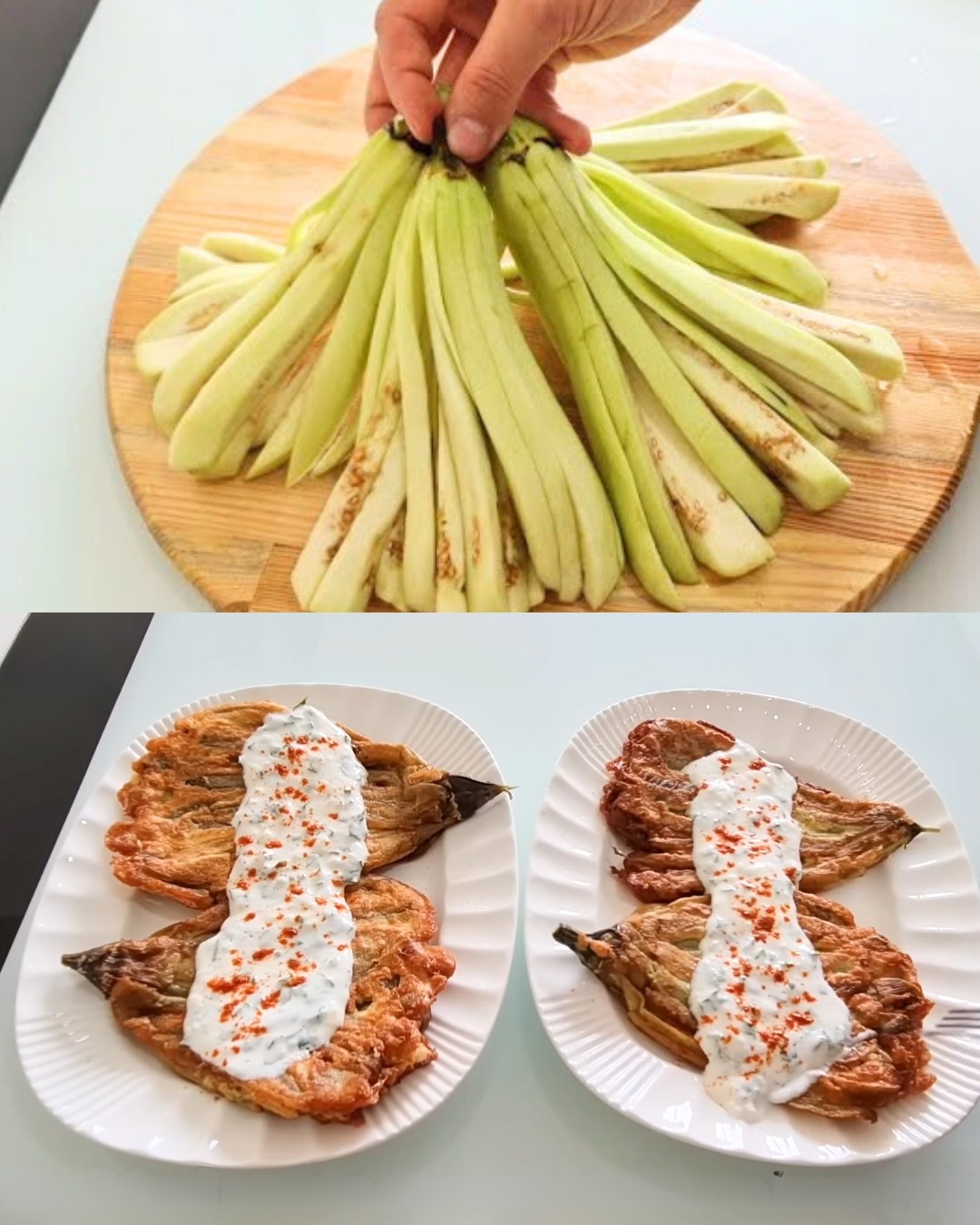 Aubergines frites croustillantes avec sauce au yaourt à l’ail