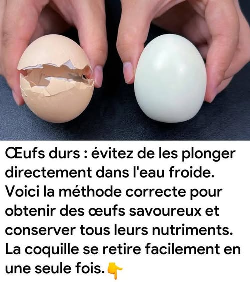Œufs durs : évitez de les plonger directement dans l’eau froide. Voici la méthode correcte pour obtenir des œufs savoureux et conserver tous leurs nutriments. La coquille se retire facilement en une seule fois. (lien en commentaire)